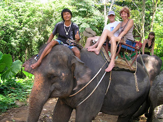 | She told us that elephants are sacred animals in Thailand and that you see them everywhere. She enjoyed her ride on one. |